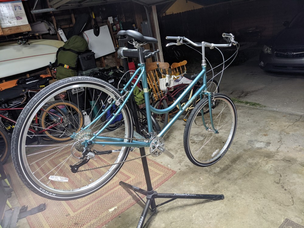 But, after putting the bigger mountain bike tires on it and riding it around town on a few errands, mostly on the road, it seemed lethargic. So, despite actually setting a new Strava PR on the Clem, when bombing a small dirt descent that I have done on literally every mountain bike I’ve owned, I decided instead, to ditch the bigger dirt tires and build the Clem to take on the “all-around bike” duty that used to be reserved for my beloved Long Haul Trucker.