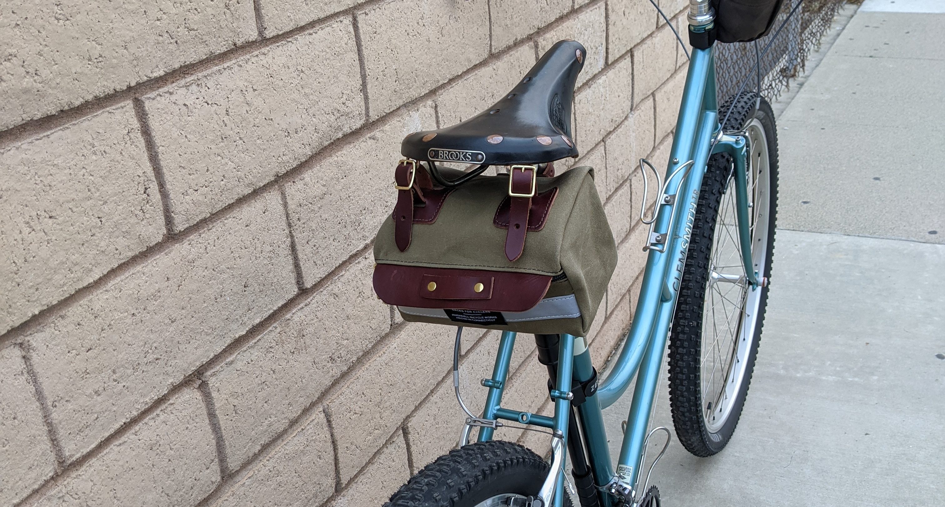I have a Rivendell Sackville SaddleSak in XSmall hanging off of my black Brooks B17 Special. It’s a great combo.