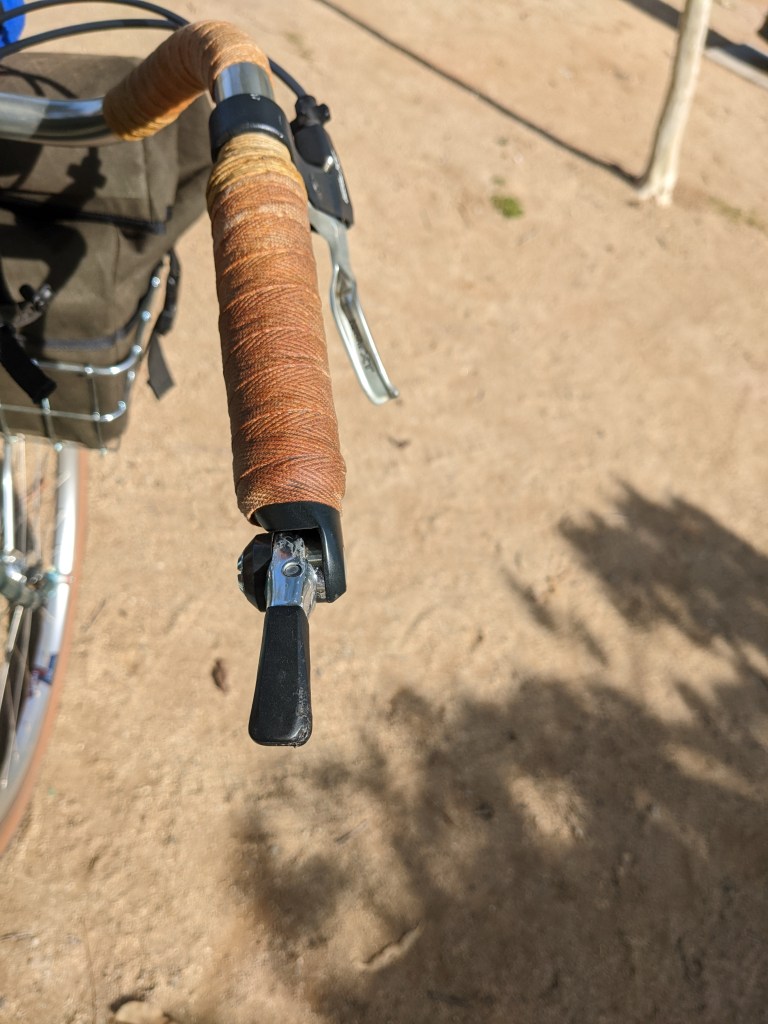 Also, swapped out the microSHIFT thumbies for a pair of Shimano Dura-Ace bar end shifters.