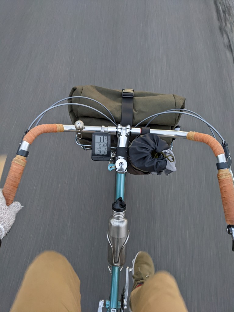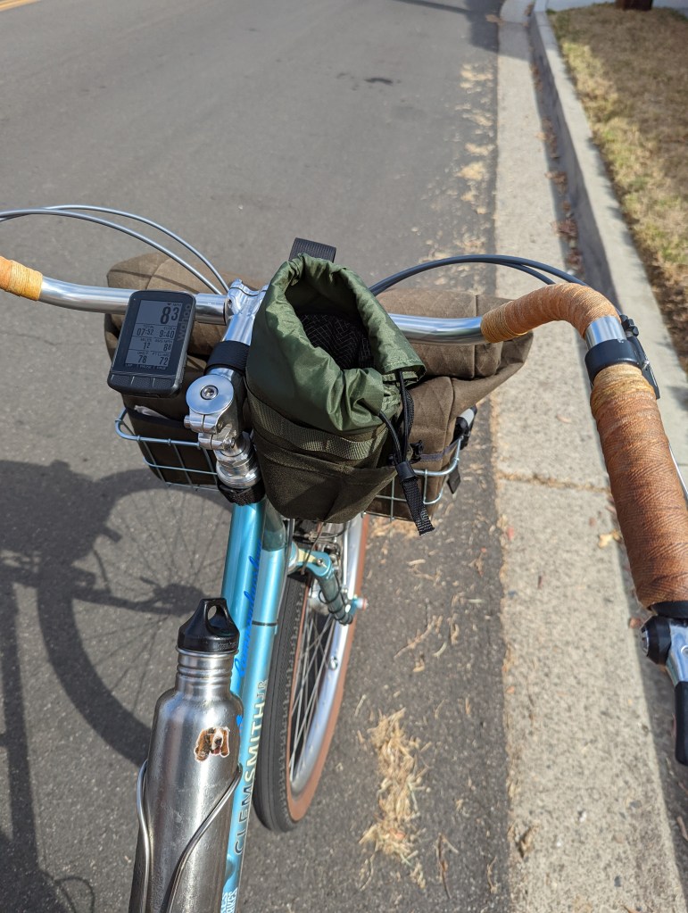 I’ve added a Nitto front rack with a Wald 137 front basket attached to it. I’ve got the absolutely amazing Tunitas Carry All Basket Bag 137 in X10 Cotton mounted inside the basket 24/7.