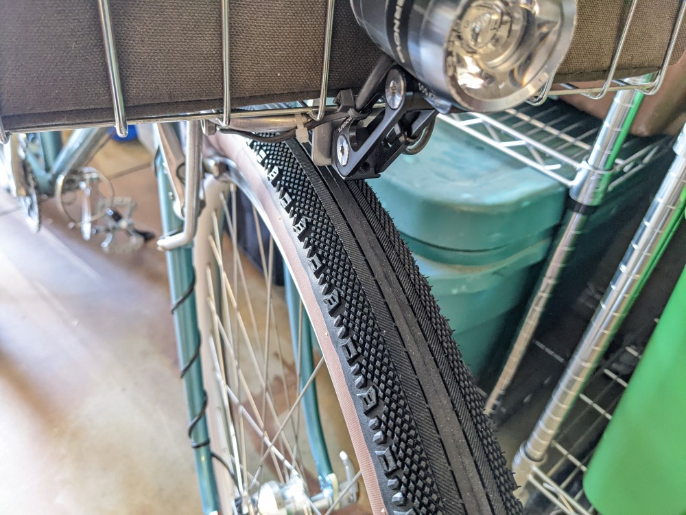 After flip-flopping on a few tire changes and sizes, like a 47c, 50c, and 2.2″ I settled for the American Classic 700 x 50c Kimberlite tires for two main reasons.