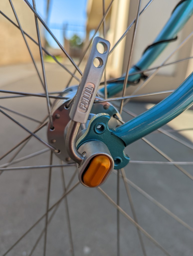 I am using a Paul Components front quick-release skewer, and a B.O.B trailer rear skewer, ya know…to pull the trailer if I need to.